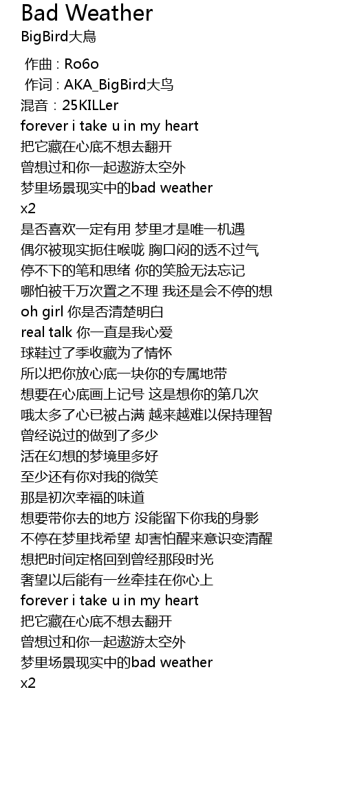 | [00:01.000] | 作词 : AKA_BigBird大鸟 |