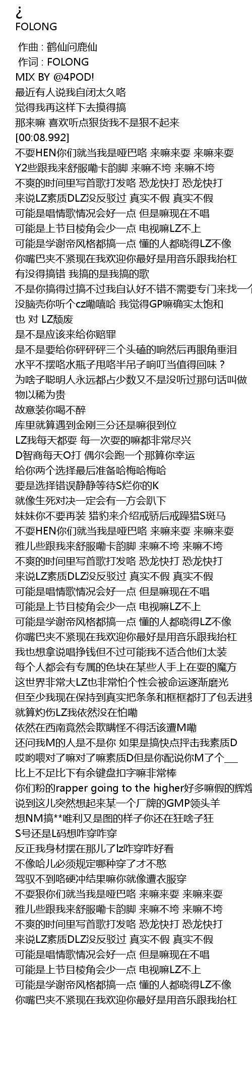 | [02:43.161] | 想NM搞**唯利又是图的样子你还在狂啥子狂 |