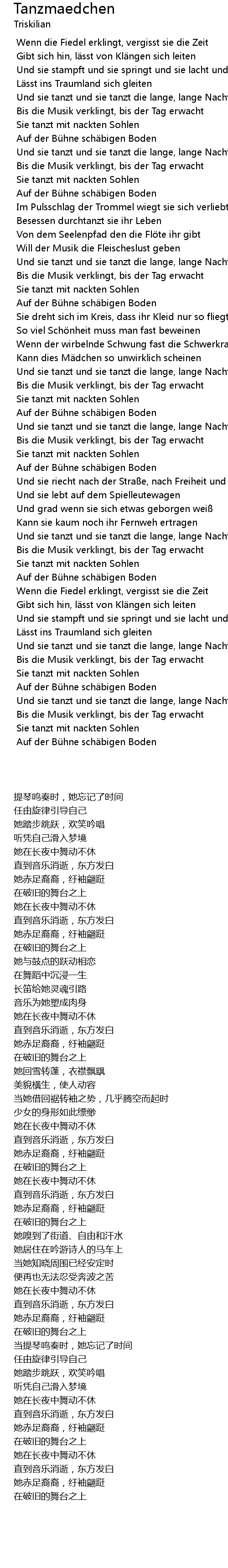| [03:38.489] | Wenn die Fiedel erklingt, vergisst sie die Zeit |