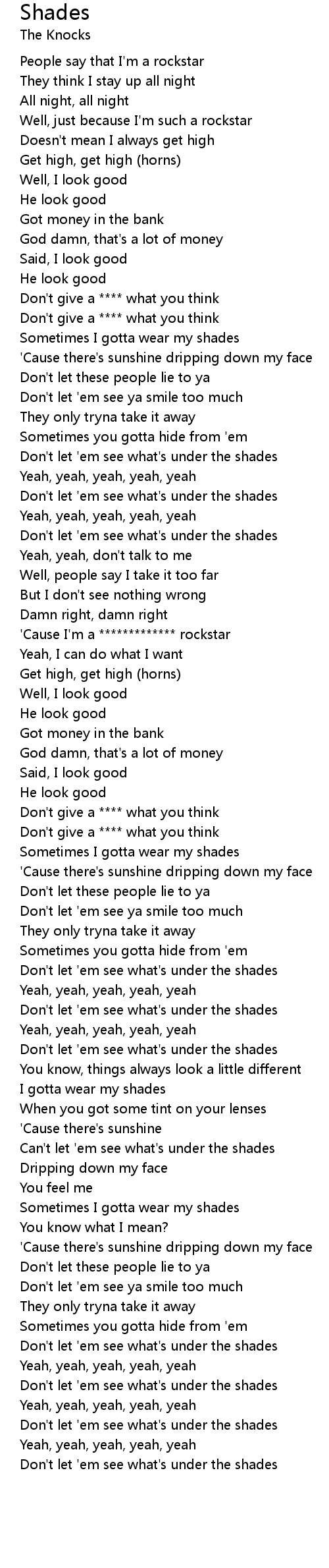 Sometimes I gotta wear my shades |