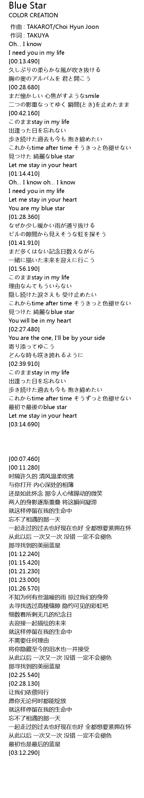 | [02:19.750] | 見つけた 綺麗なblue star |