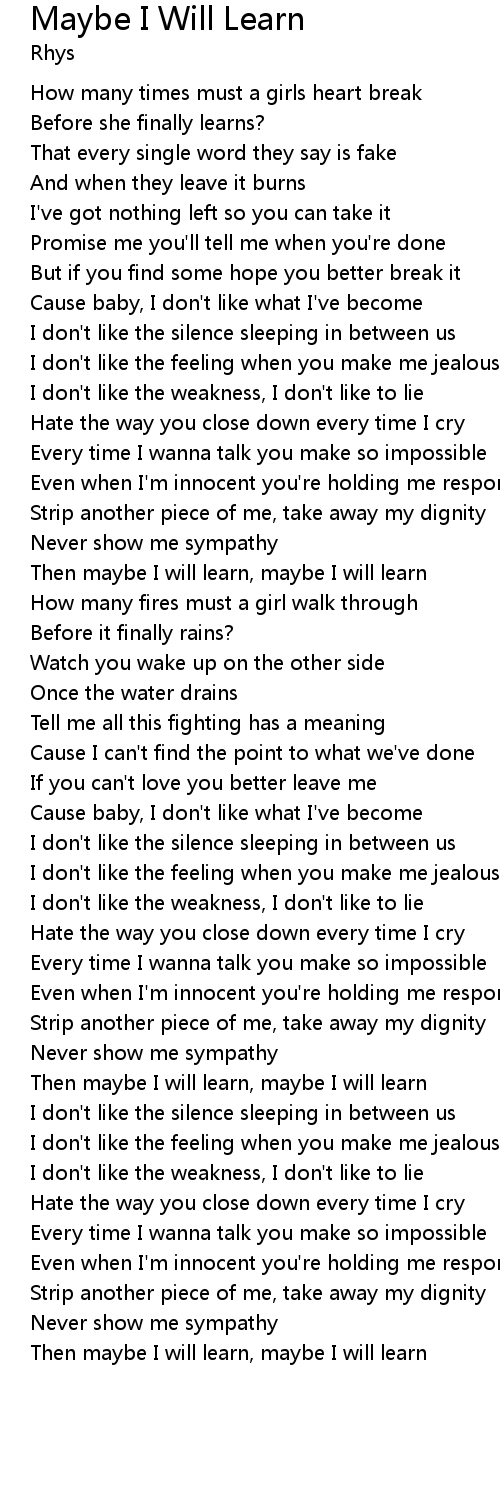 | [03:04.36] | Then maybe I will learn, maybe I will learn |