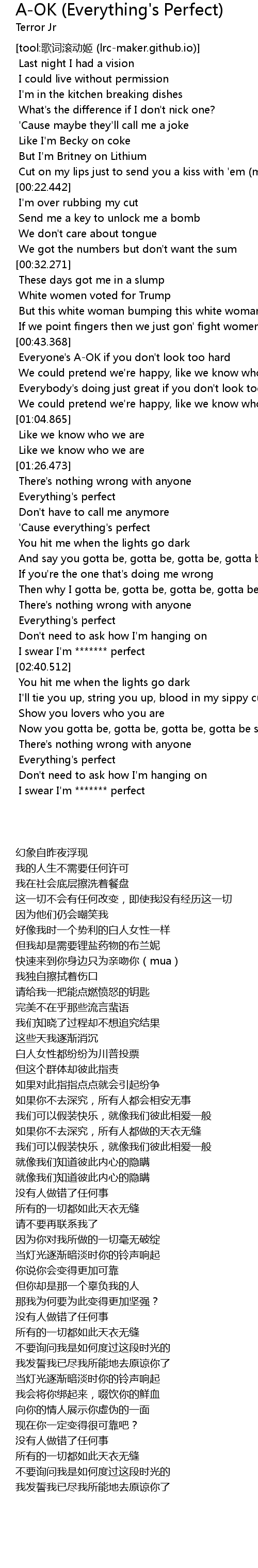 | [02:37.766] | I swear I'm ******* perfect |