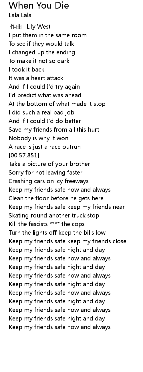 | [01:44.904] | Keep my friends safe keep my friends close |