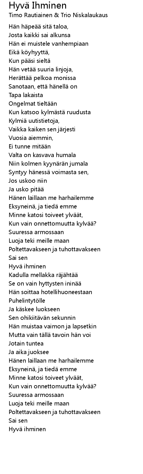 | Artist | Timo Rautiainen & Trio Niskalaukaus |