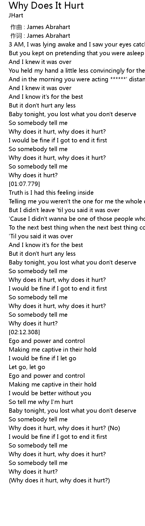 | [02:44.415] | Why does it hurt, why does it hurt? No |