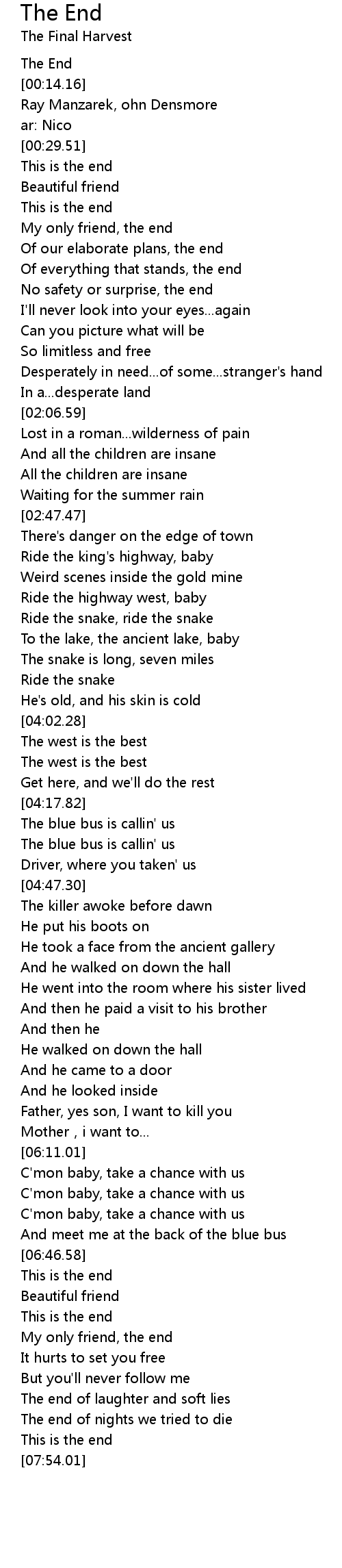 | [07:00.32] | My only friend, the end |