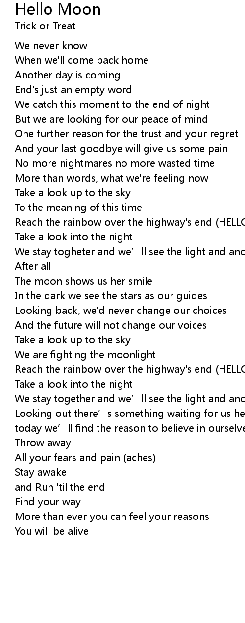 | We stay together and we' ll see the light and another reason HELLO MOON | |