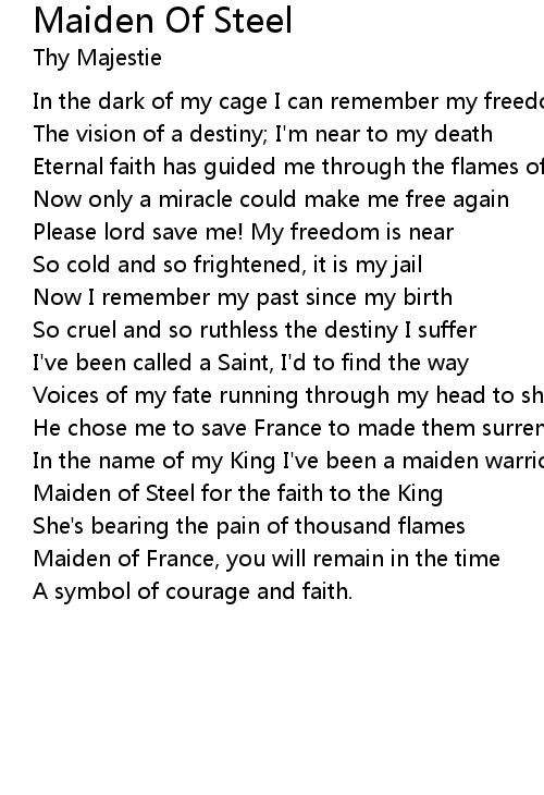 Maiden of Steel for the faith to the King |