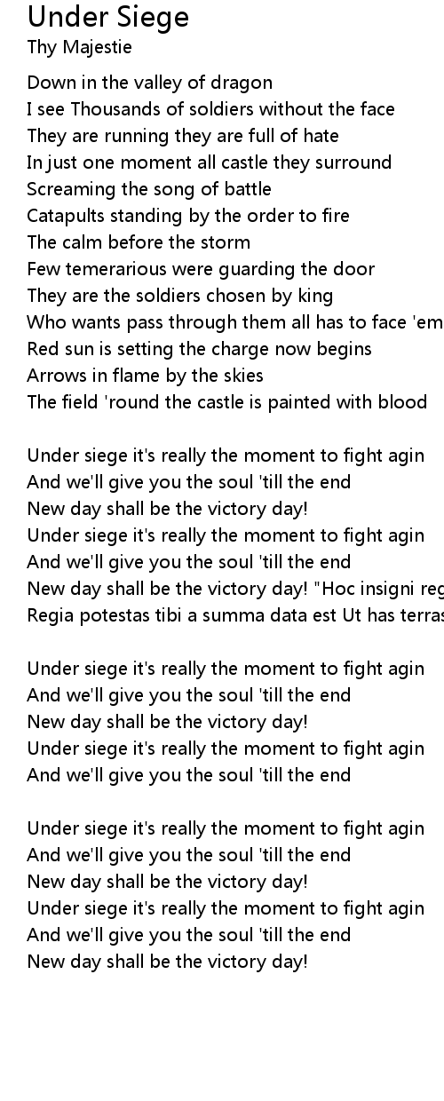 New day shall be the victory day! "Hoc insigni regio libertatis regem te nomino. Regia potestas tibi a summa data est Ut has terras servitute fame atque bellis liberare posses". [Chorus] |