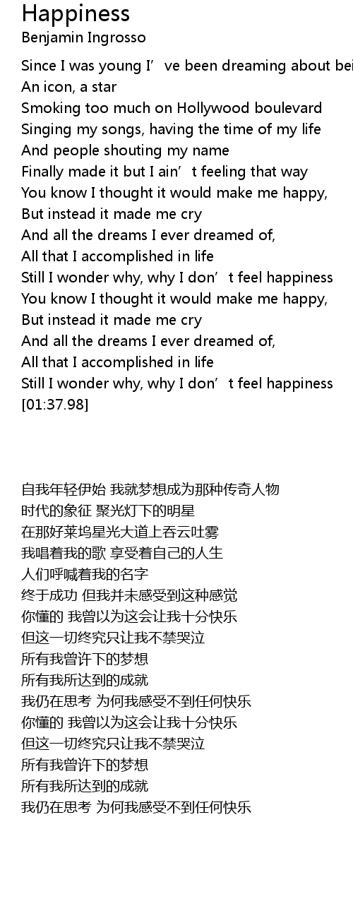 | [01:31.22] | Still I wonder why, why I don' t feel happiness |