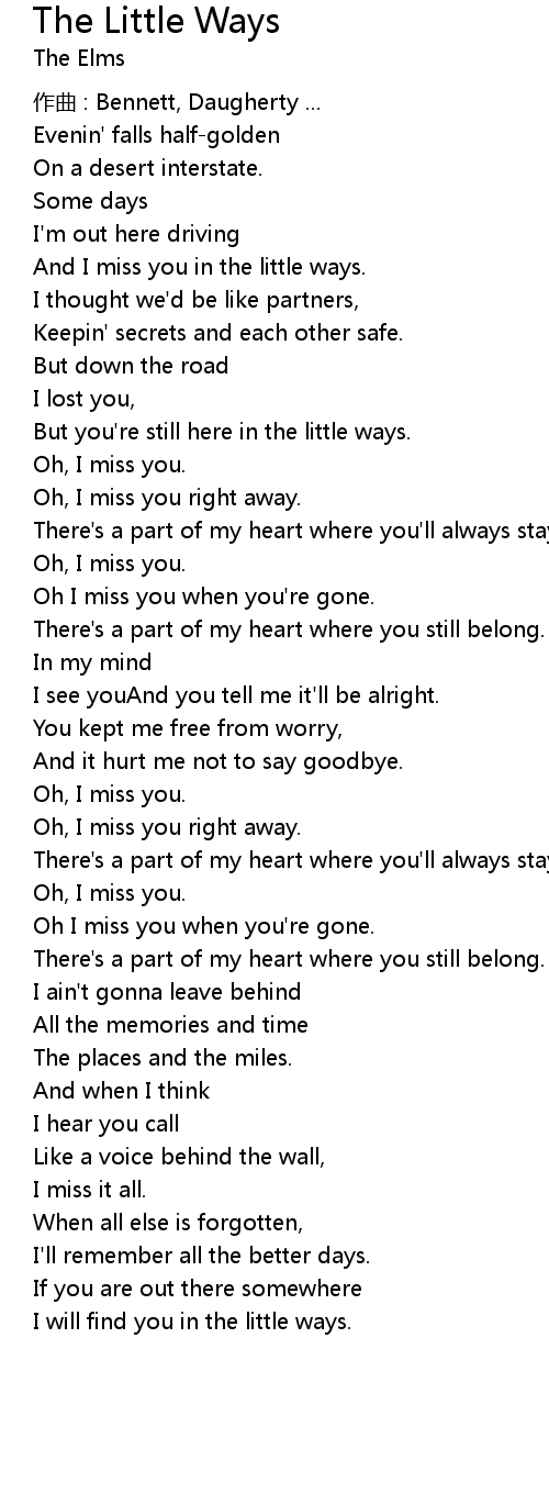 | And I miss you in the little ways. | |