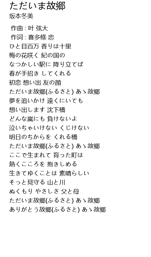| [01:06.02] | ただいま故郷(ふるさと) あゝ故郷 |