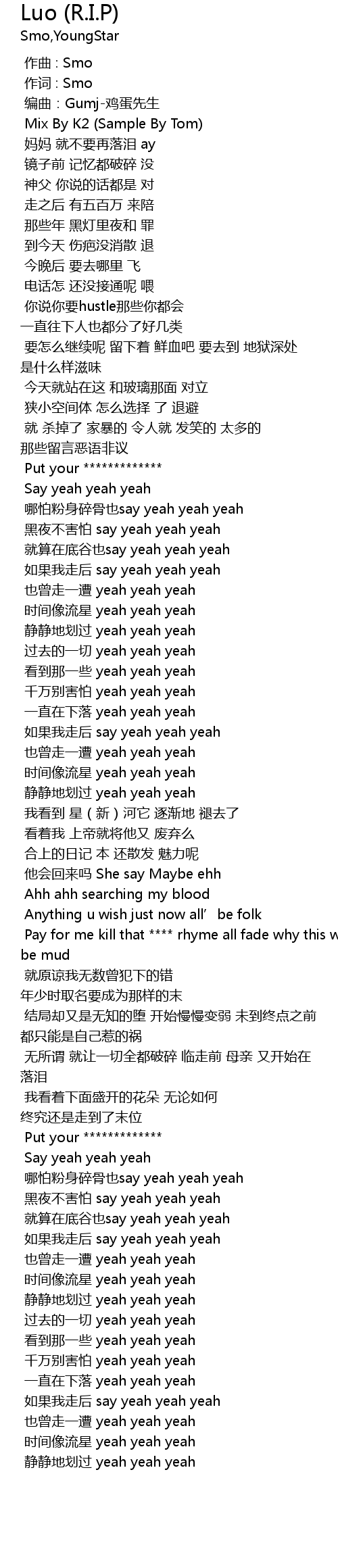 | [00:01.000] | 作词 : Smo |
