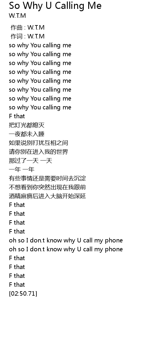 | [01:56.42] | oh so I don. t know why U call my phone |