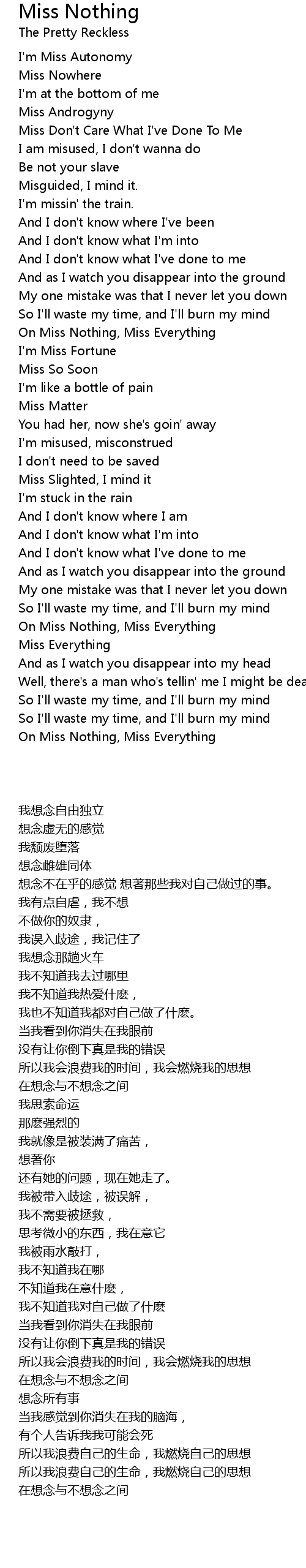 On Miss Nothing, Miss Everything |
