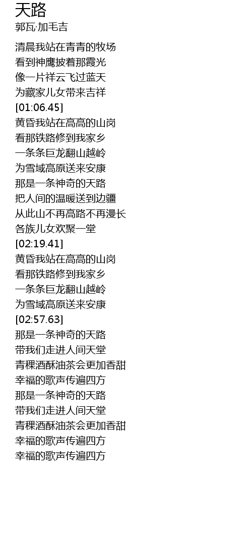 | [01:42.65] | 那是一条神奇的天路 |