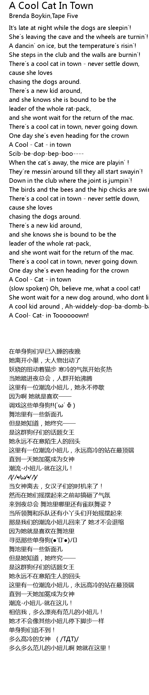 | [01:08.42] | A Cool Cat in town |
