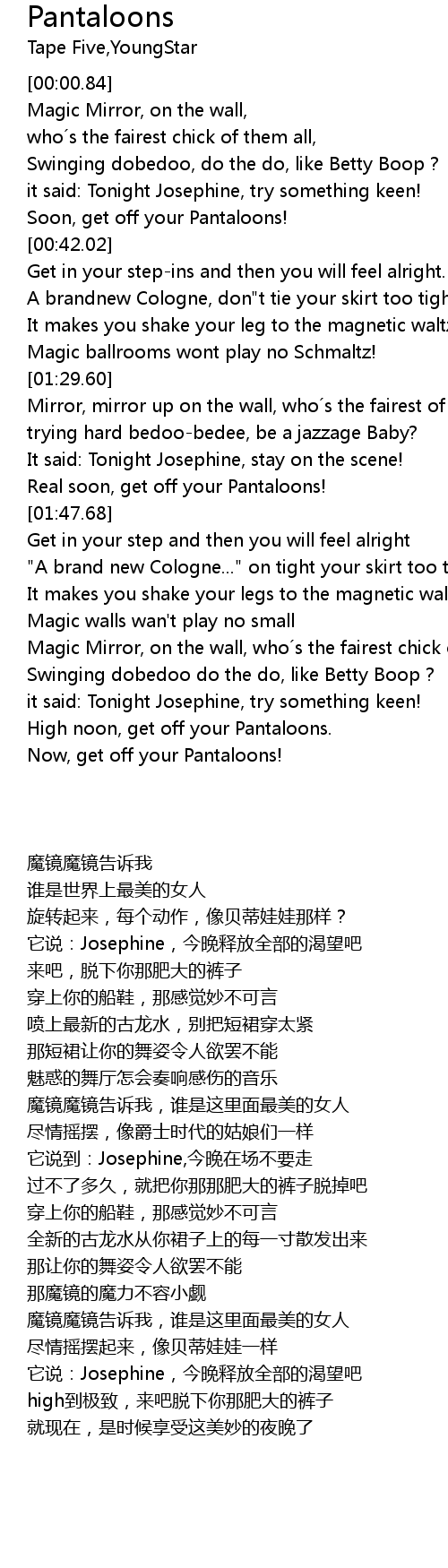 | [00:38.03] | Soon, get off your Pantaloons! |