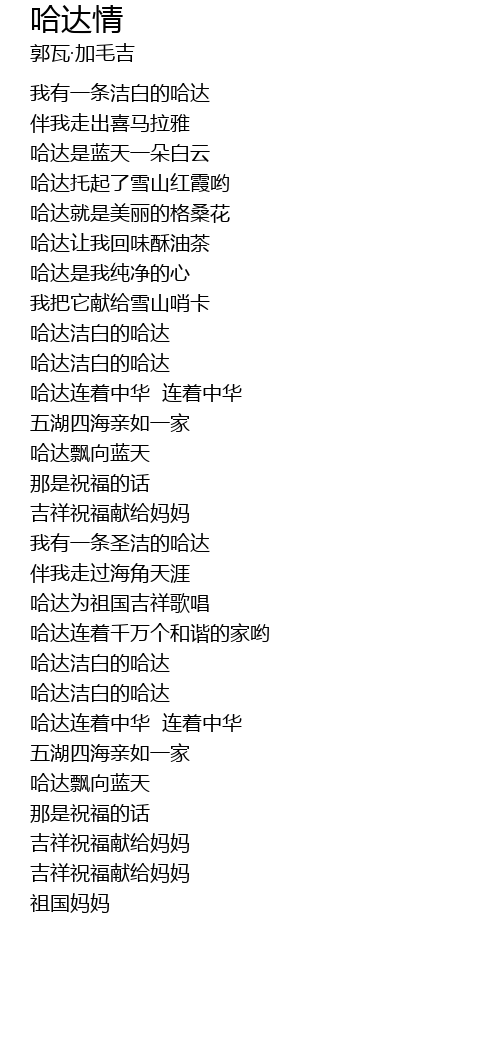 | [03:03.610] | 哈达洁白的哈达 |