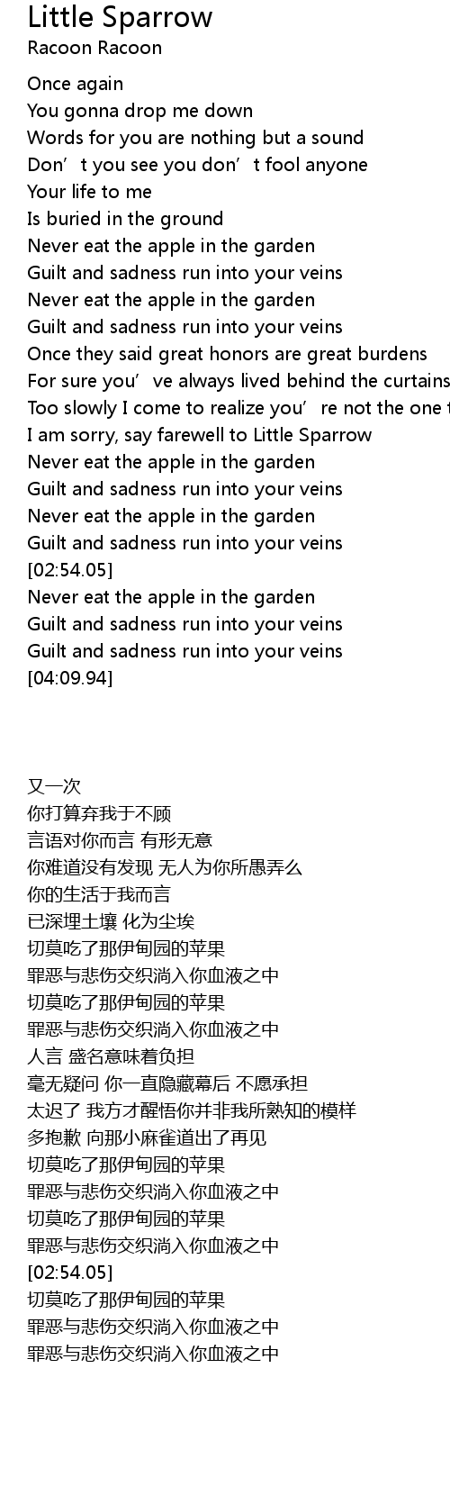 | [02:10.07] | I am sorry, say farewell to Little Sparrow |