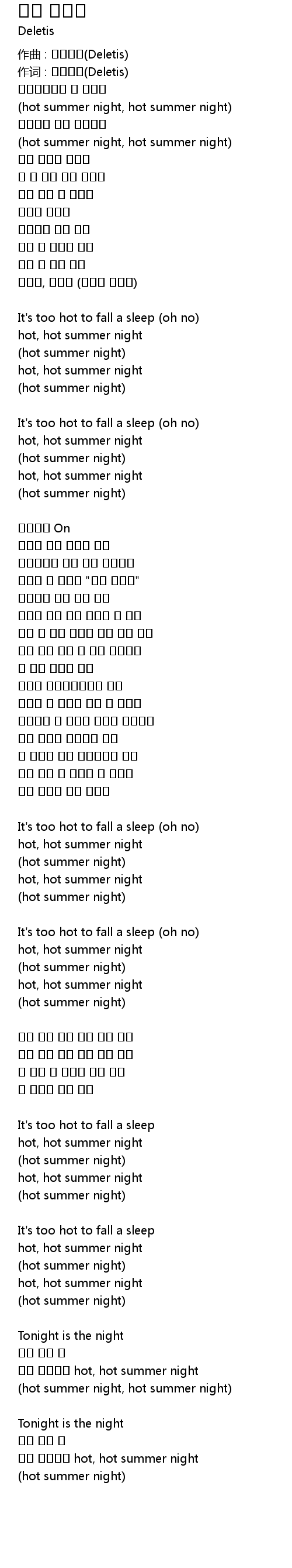 | 作词 : 딜리티스(Deletis) | |