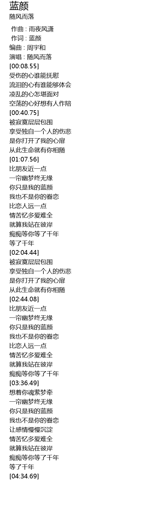 | [02:57.34] | nǐ zhǐ shì wǒ de lán yán |