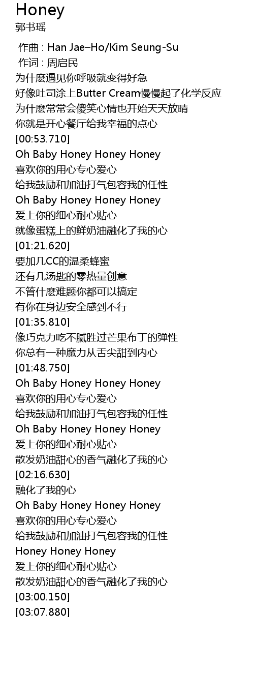 | [01:49.229] | Oh Baby Honey Honey Honey |