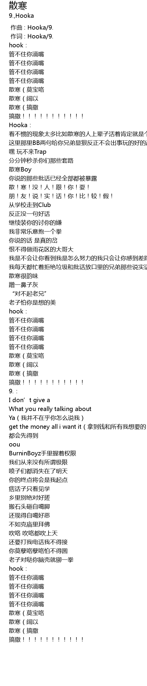 | [00:01.000] | 作词 : Hooka/9. |