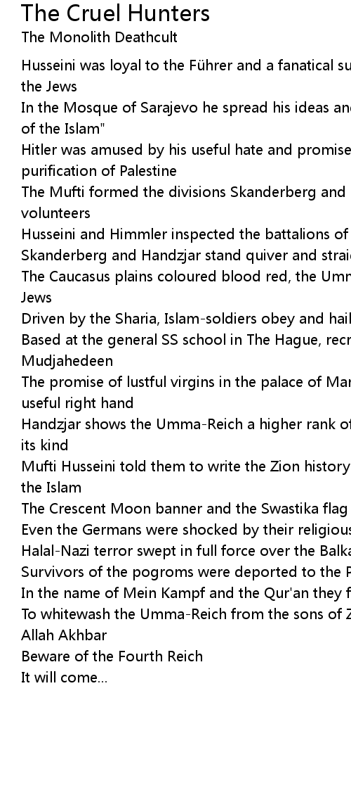 | In the name of Mein Kampf and the Qur'an they fulfil the disgusting order | |