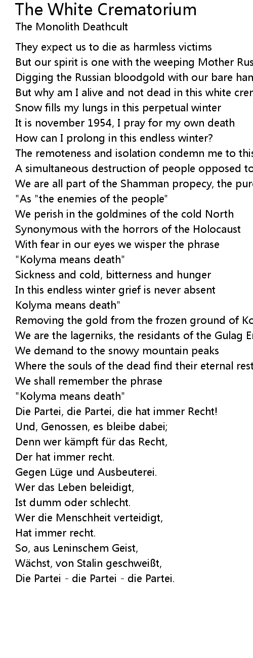| Song | The White Crematorium |