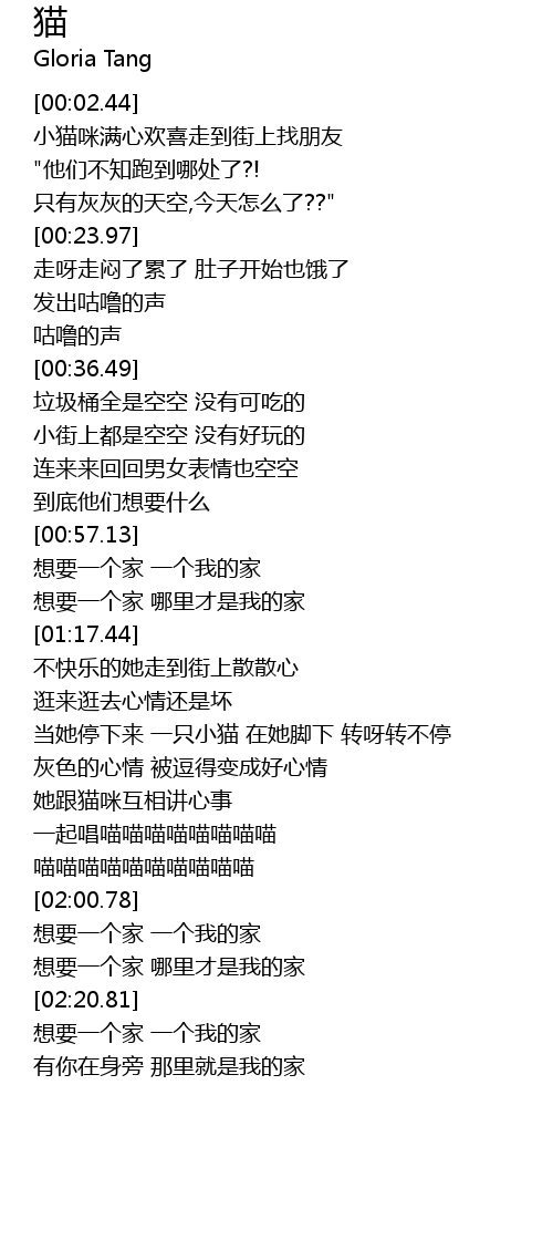 | [01:53.58] | 一起唱喵喵喵喵喵喵喵喵 |