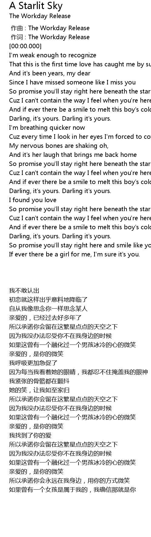 | [00:33.500] | So promise you' ll stay right here beneath the starlit sky |