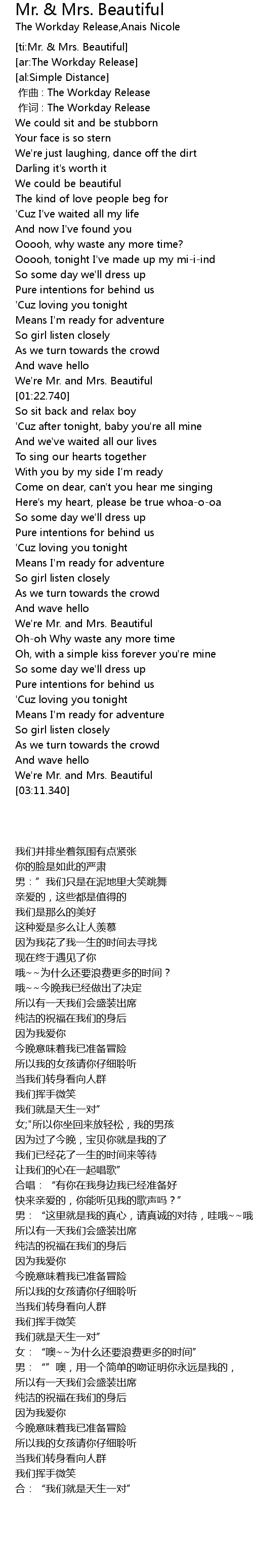 | [02:25.590] | We're Mr. and Mrs. Beautiful |