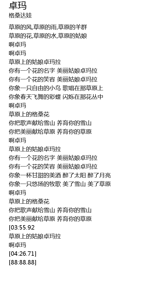 | [04:04.13][03:55.92] | 啊卓玛 |