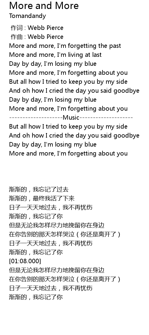| [01:01.000] | More and more, I' m forgetting about you |