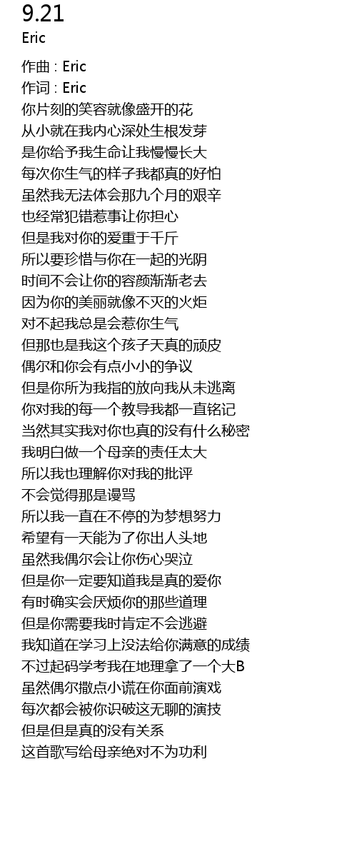 | 作词 : Eric | |