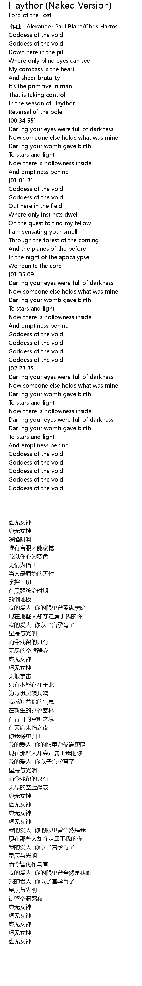 | [02:20.35] | Goddess of the void |