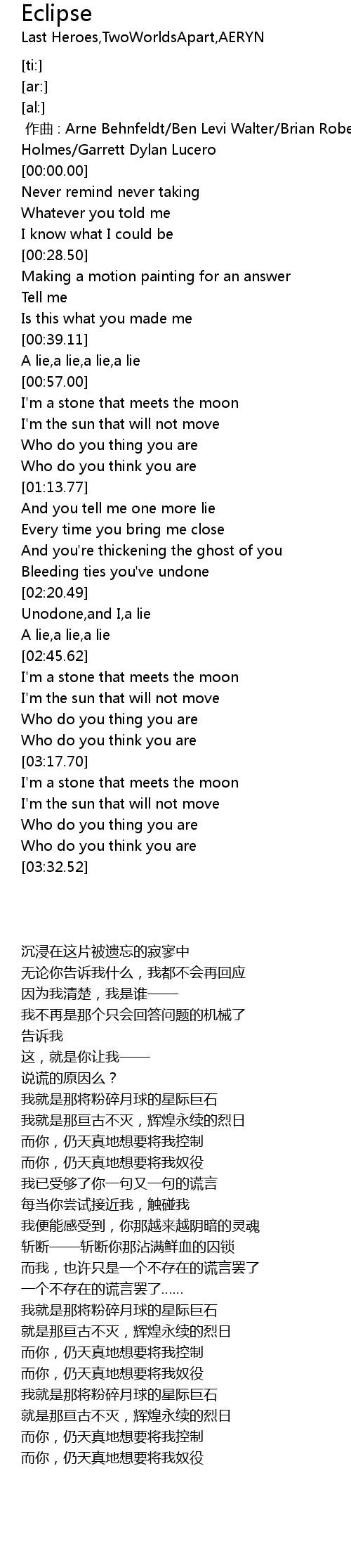 | [00:00.000] | zuo qu : Arne Behnfeldt Ben Levi Walter Brian Robert Helander Erin Holmes Garrett Dylan Lucero |