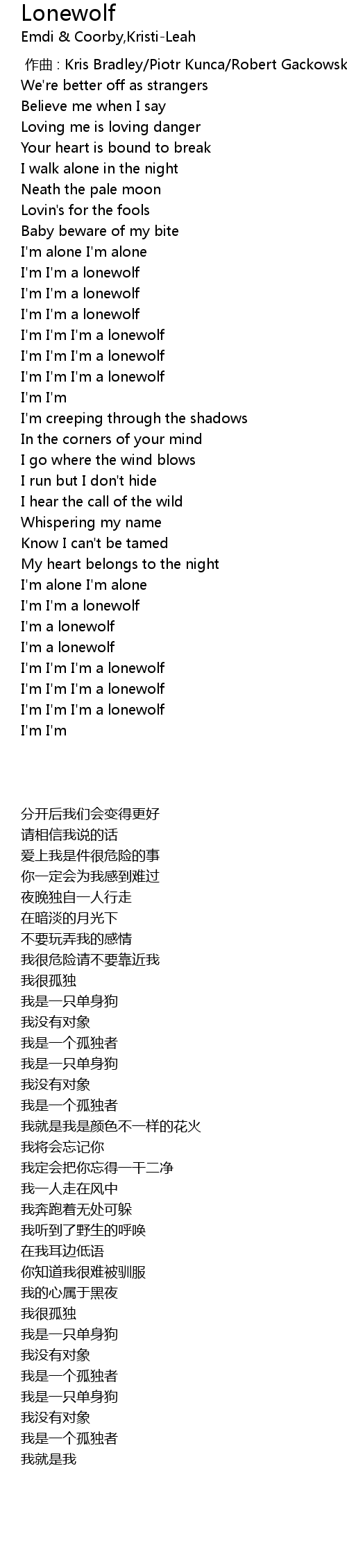 | [00:51.59] | I' m I' m I' m a lonewolf |