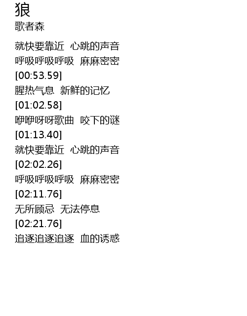 | [02:03.07] | 呼吸呼吸呼吸 麻麻密密 |