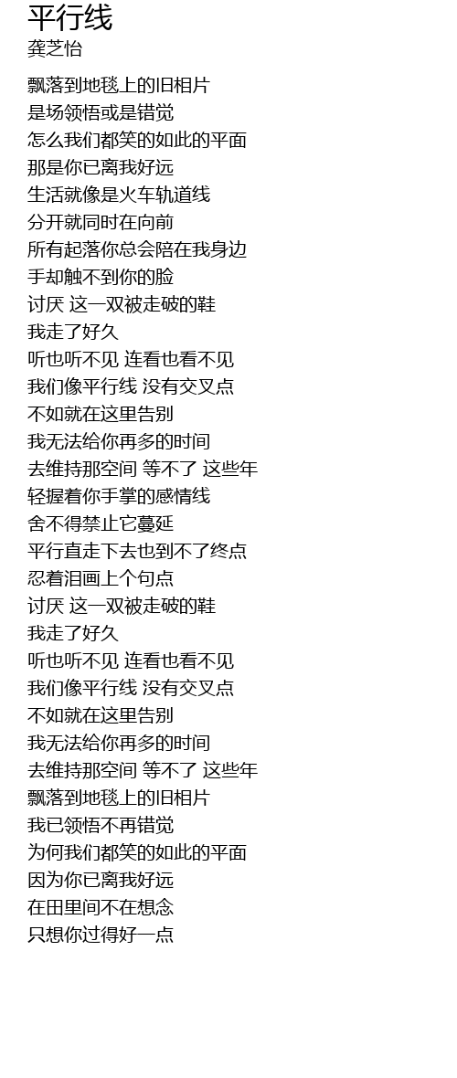 | [01:03.23] | 我们像平行线 没有交叉点 |