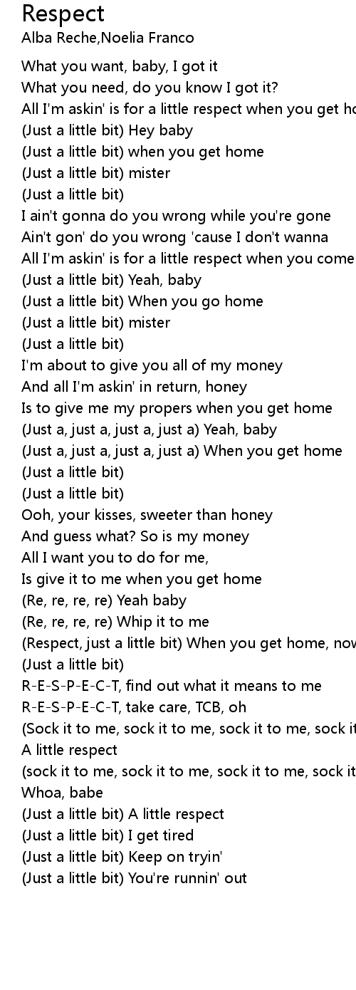 R-E-S-P-E-C-T, take care, TCB, oh |