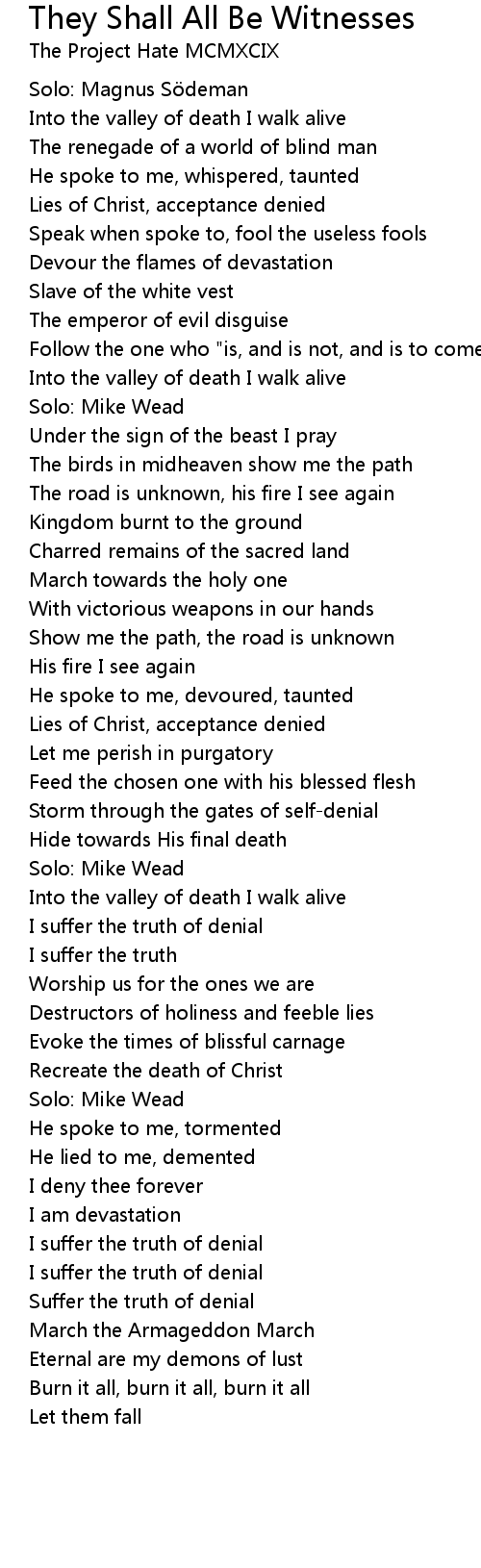 | Song | They Shall All Be Witnesses |