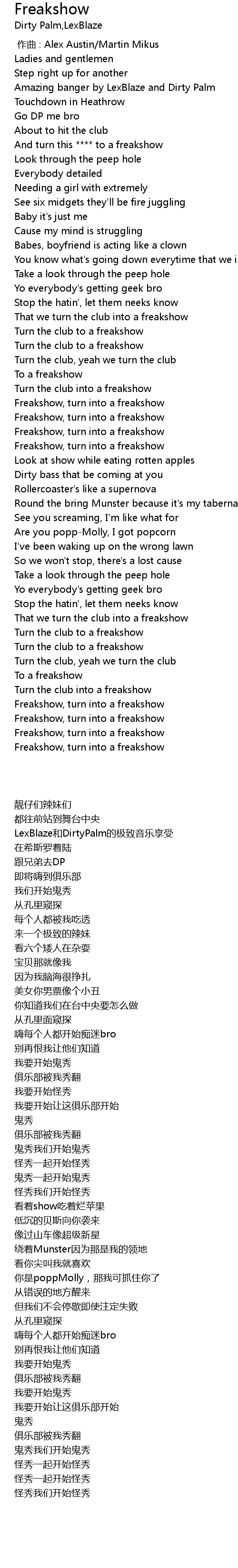 | [02:36.039] | Freakshow, turn into a freakshow |