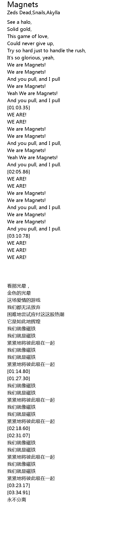 | [03:01.29] | We are Magnets! |