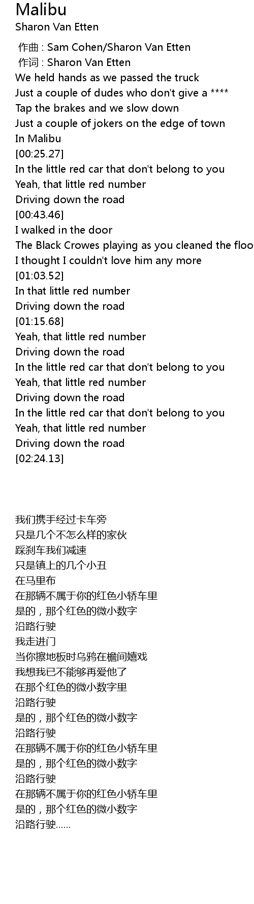 | [00:21.95] | In Malibu |