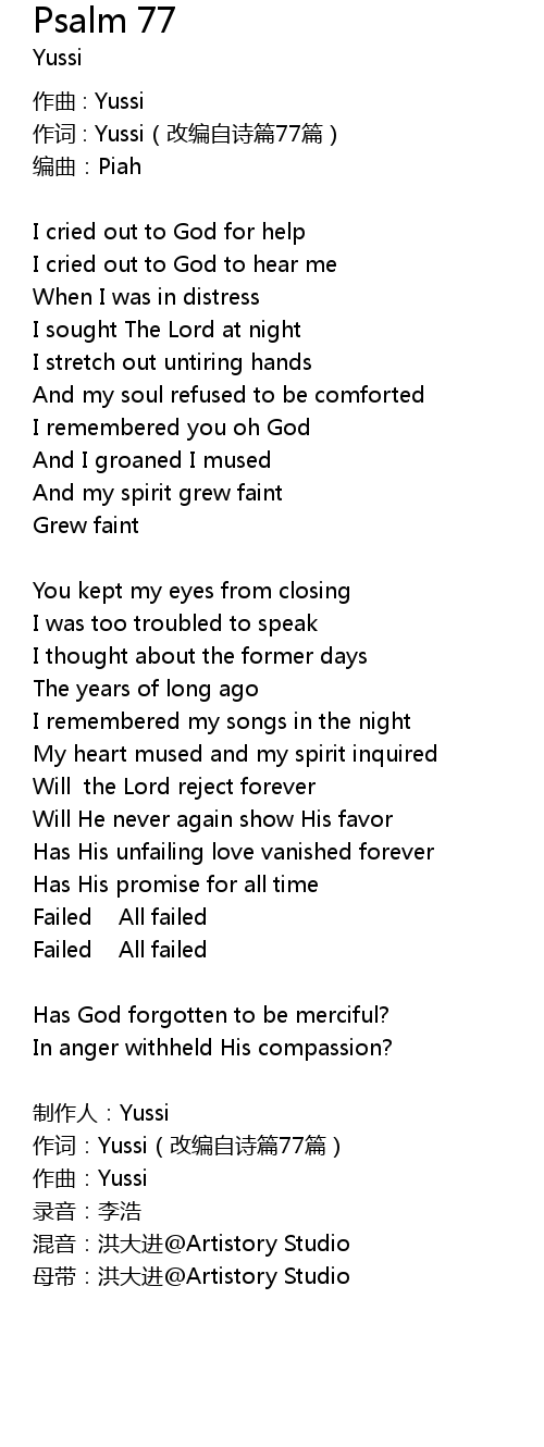 | 作词 : Yussi(改编自诗篇77篇) | |