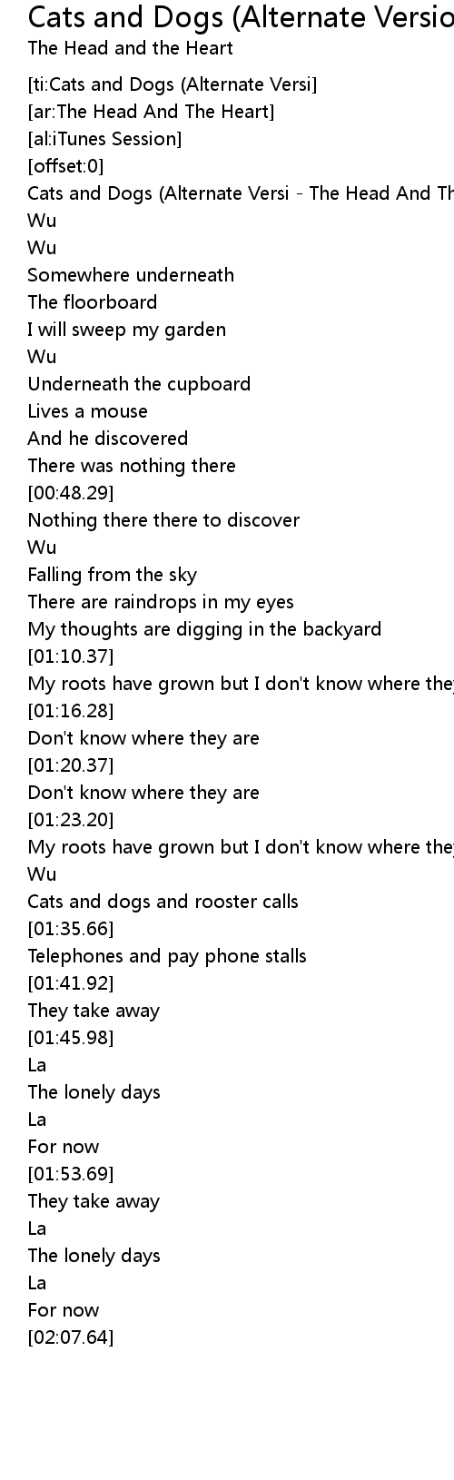 Cats and Dogs (Alternate Versi - The Head And The Heart |