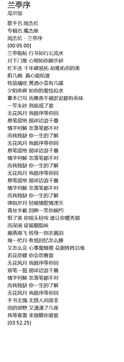 | [00:00.00] | 周杰伦 - 兰亭序 |
